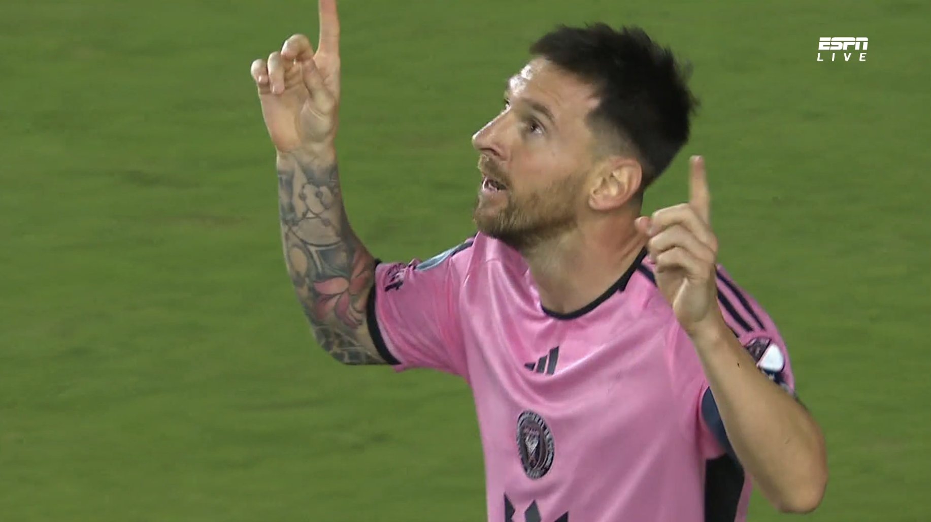 迈阿密国际vs纳什维尔,梅西破门,随后做出庆祝动作