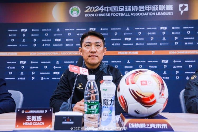 3月16日下午,中甲第2轮第14场苏州东吴队赛前新闻发布会召开,主教练金大仪携队员张竟哲出席。