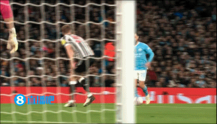 曼城的第一粒进球也是B席打门被纽卡球员挡进自家球门。