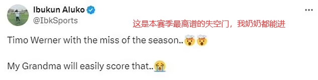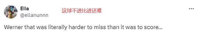 英超第29轮,热刺客场0-3富勒姆,本场比赛维尔纳有一次非常离谱的空门不进。