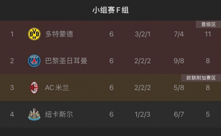 在“死亡之组”F组中,头名出线的多特和第二名的巴黎目前都已晋级8强。
