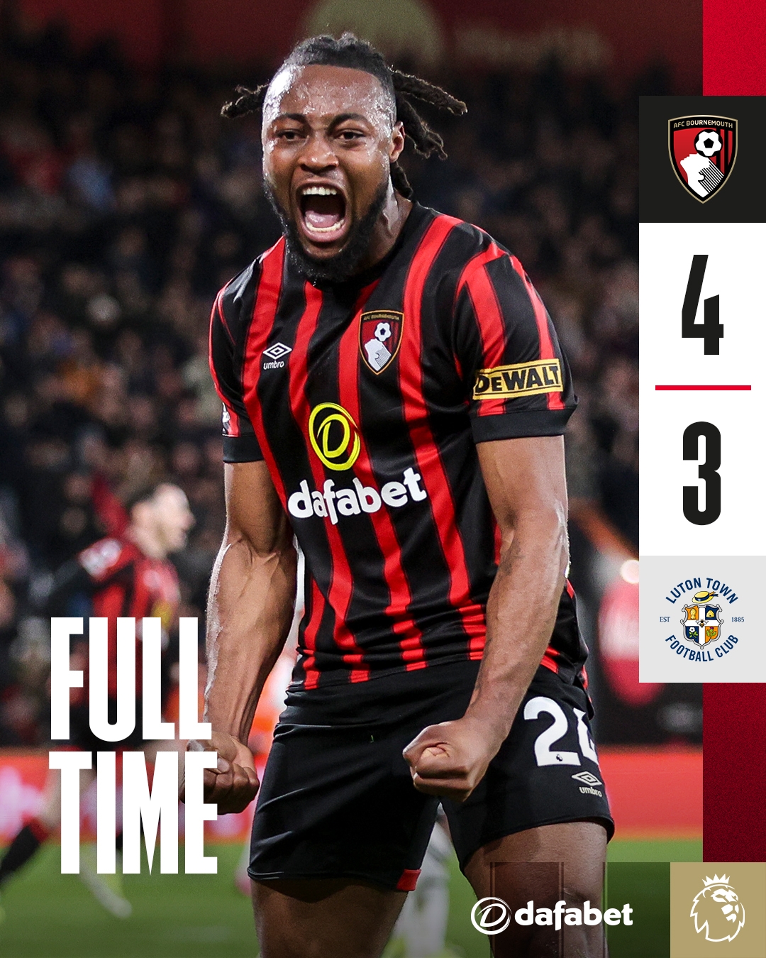 英超上演史诗级大逆转!伯恩茅斯让三追四4-3卢顿 卢顿中场3-0领先
