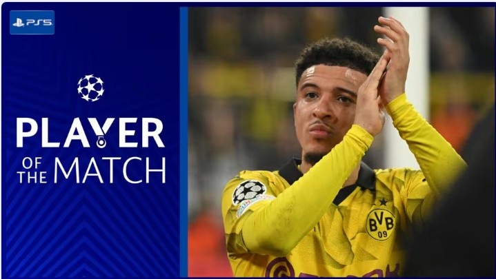 欧足联官方消息,桑乔当选本场比赛最佳球员。