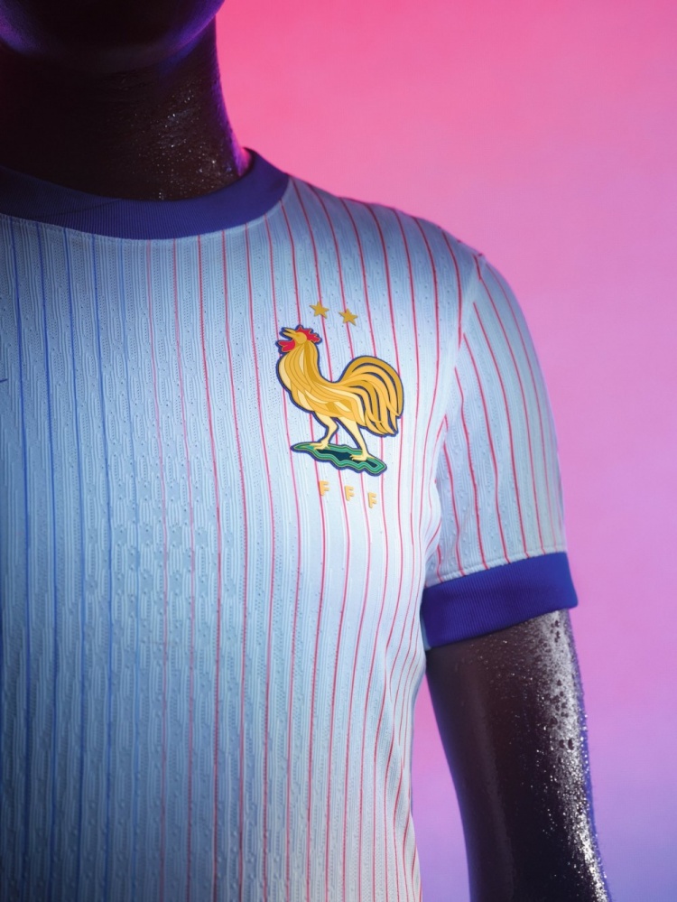 新的主场球衣衣领上有法国队国旗上的配色,客场球衣上的细条纹巧妙地从蓝色变为红色,并搭配上蓝色的袖口和衣领。