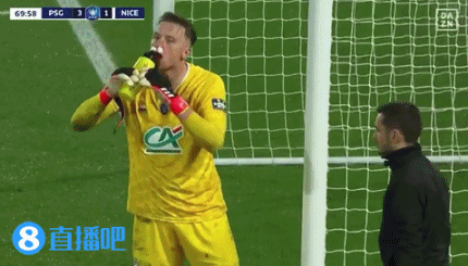 03月14日讯 法国杯1/4决赛,巴黎圣日耳曼主场vs尼斯,比赛第67分钟,尼斯门将布尔卡扑救李刚仁的任意球时与队友撞在一起,鼻子出血把衣服染红。