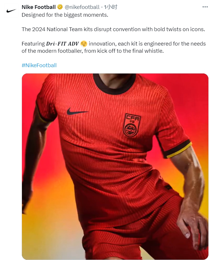 3月18日讯 耐克今天正式发布了中国国家队的新款球衣。