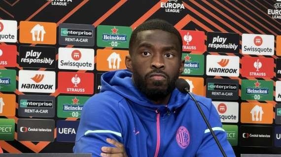 3月14日讯 AC米兰将在欧联杯四分之一决赛次回合客场挑战布拉格斯拉维亚,首回合,AC米兰凭借吉鲁、赖因德斯、奇克和普利西奇的进球以4-2获胜。米兰后卫托莫里出席赛前新闻发布会。