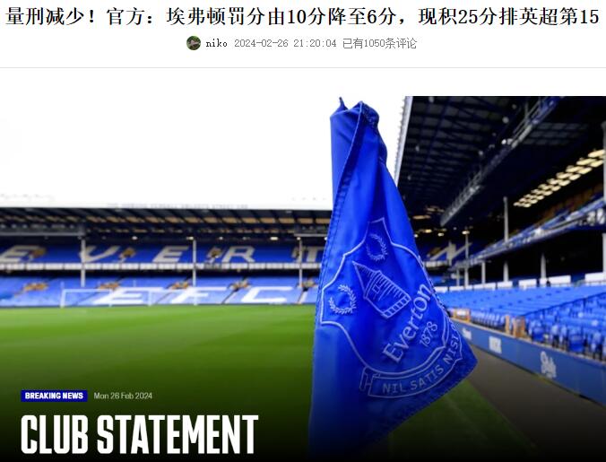 埃弗顿亏损超1950万镑扣6分,诺丁汉森林亏损超3450万镑扣4分......