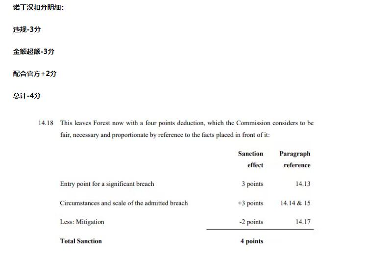 诺丁汉森林财务违规被扣4分!