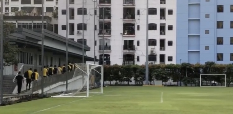 今天正在新加坡备战的国足,更换了训练场地。昨天的训练场地,离酒店有50分钟车程。新场地距离下榻酒店较近,开车只需要20分钟,属于社区里的足球场,场地条件也比昨天要好些。