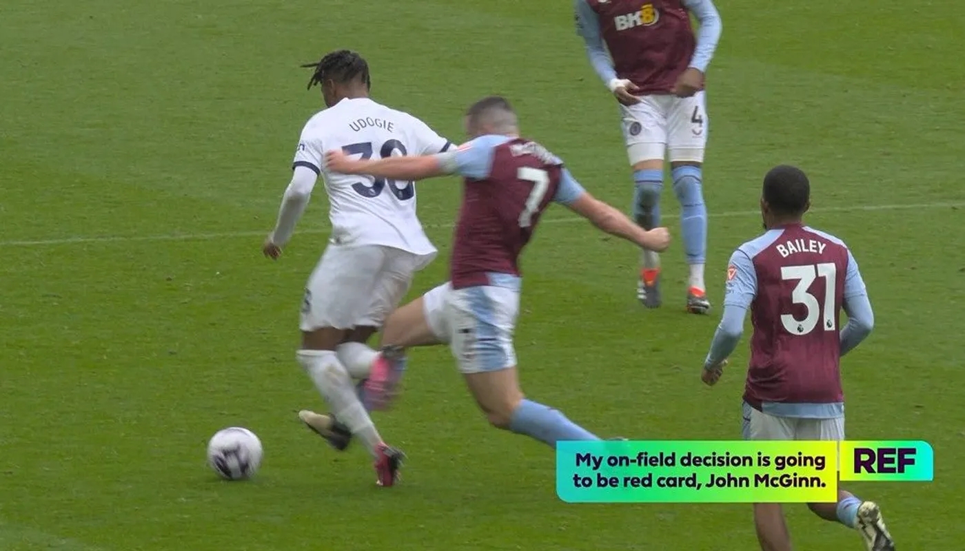 3月20日讯 英超裁判公司高层韦伯和名宿欧文谈到了维拉vs热刺的比赛中,麦金铲倒乌多吉染红。