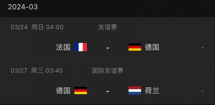 德国本月友谊赛赛程↓