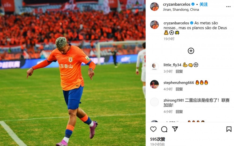 克雷桑在个人社媒晒照鼓励自己,他同时写道:“坚定我们的目标,然后听天由命。”克雷桑已为泰山队出战69次,贡献51球16助攻,近期与球队续约至2027年。