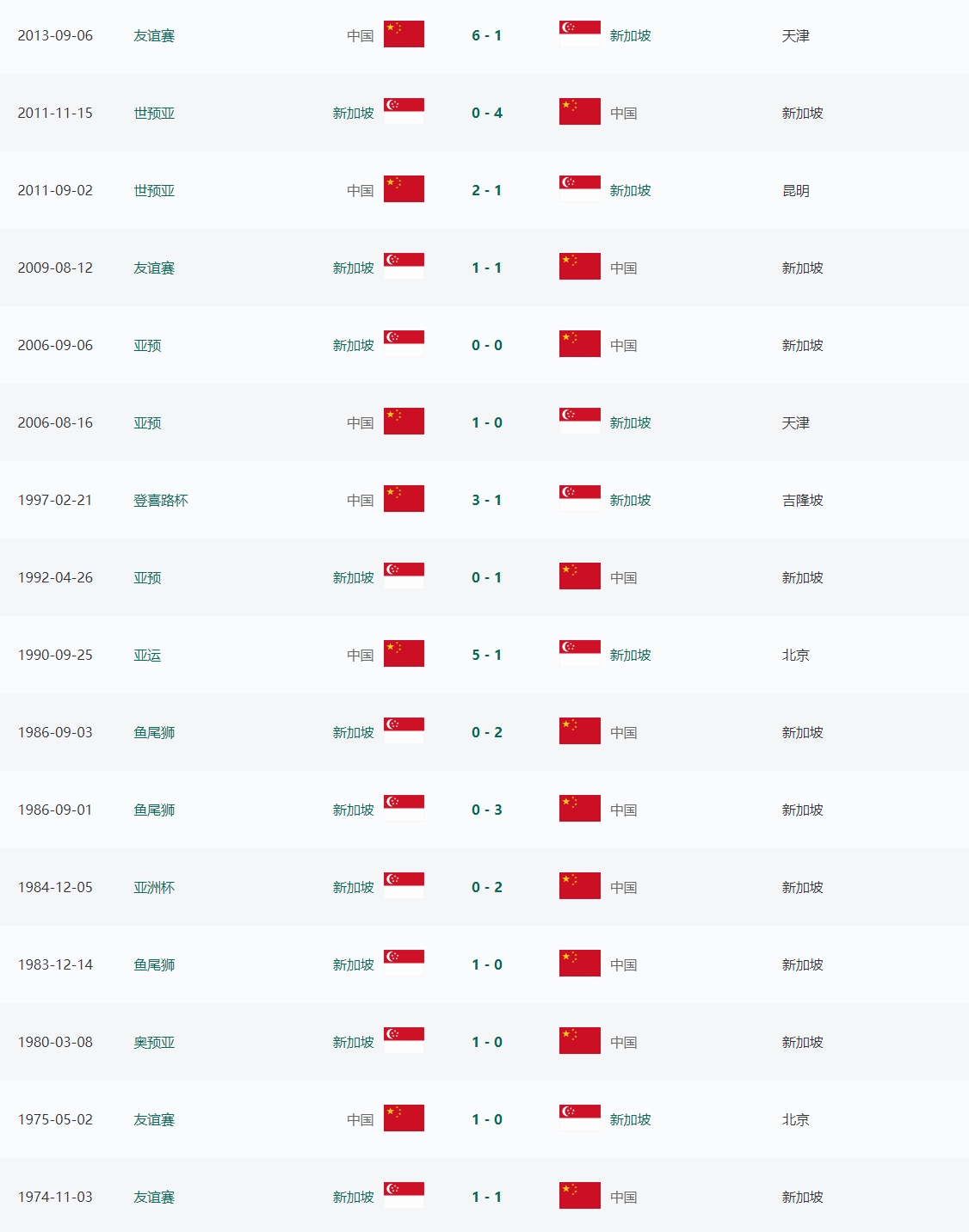 赛前根据中国足协官网提供的交战数据显示,国足对新加坡历史交锋16次,战绩为11胜3平2负,进32球失8球,可以说历史战绩国足占优。