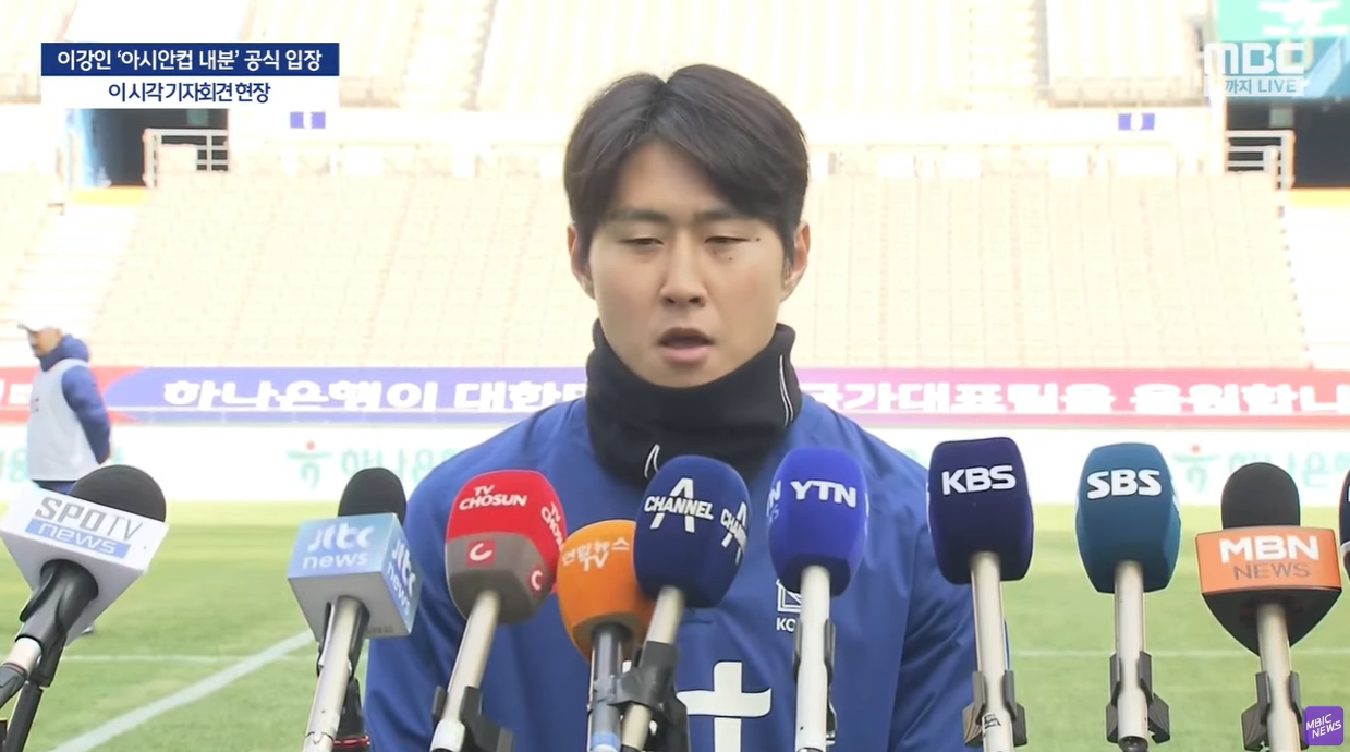 李刚仁:“很感谢黄善洪教练给我这次机会,我在亚洲杯期间得到了很多爱和关注。很抱歉让你们失望了,我经常反思并从中学到了很多,我会成为一个更好的球员,更好的人。”