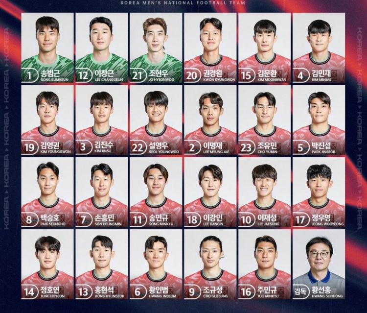 根据赛程,韩国队将于21日和26日分别在主客场对阵泰国队。本期韩国队球员号码如下: