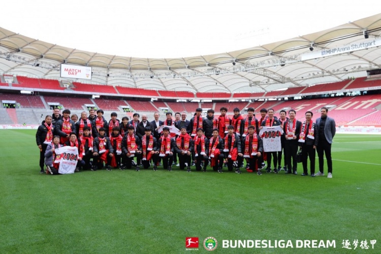 带着些许遗憾与期待,中国U-16男足在第二周来到了斯图加特足球俱乐部。球队刚抵达就受到了俱乐部和中国驻德国大使馆的高度重视,中国驻德国大使吴恳、斯图加特足球俱乐部主席亚历山大·维尔勒(Alexander Wehrle)及德甲相关官员看望慰问了中国U-16男足一行,邀请球队登上斯图加特主场-MHP竞技场(MHPArena)的德甲比赛草坪共同合影留念,还邀请球员们现场观看了随后开始的德甲联赛,零距离感受德甲火热的球迷氛围。