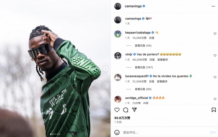 卡马文加晒出到国家队报到的时尚搭配照,维尼修斯评论:你是门将吗?