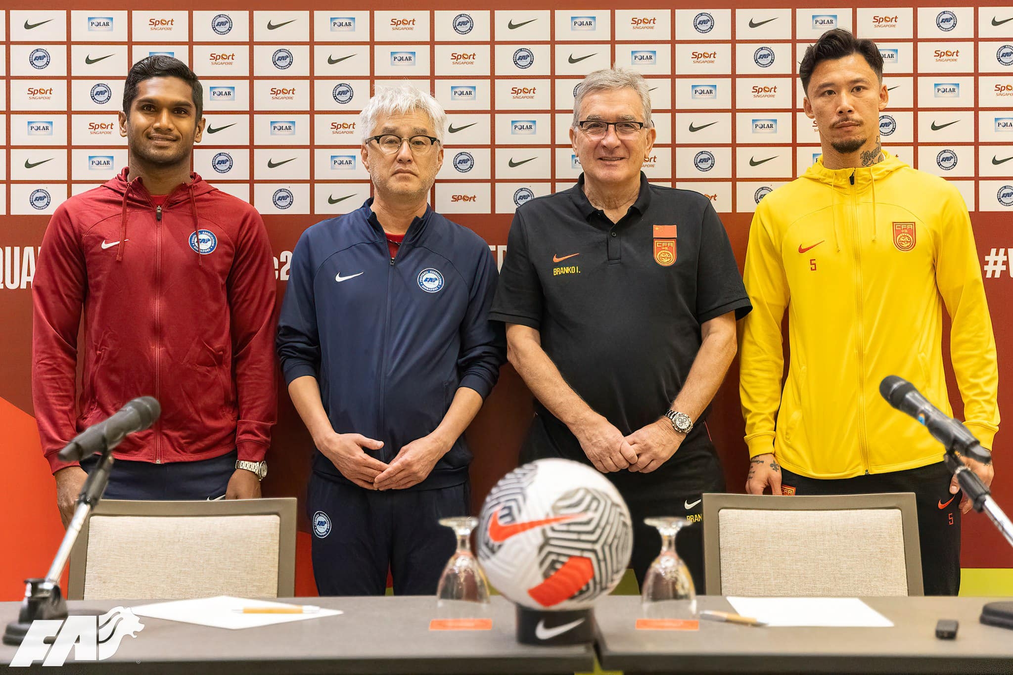 图从右至左:张琳芃、伊万科维奇、新加坡主帅小仓勉、新加坡队长哈里斯-哈伦