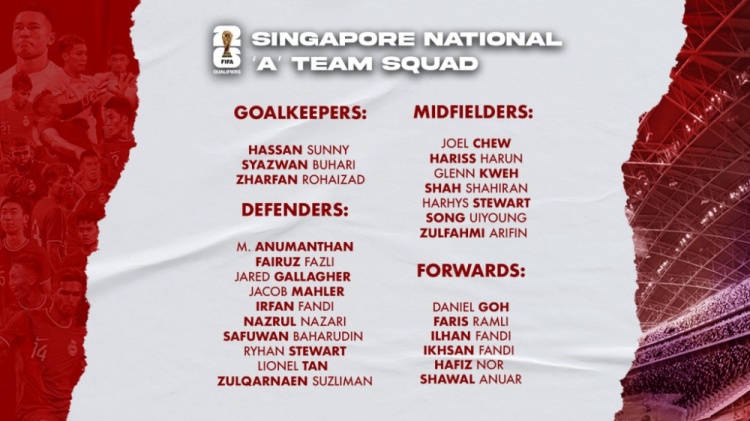 新加坡足协此前公布最新一期名单,共26人入选。其中有效力于比利时乙级联赛丹泽队的前锋伊尔汗-范迪,全队有多名球员在海外效力。