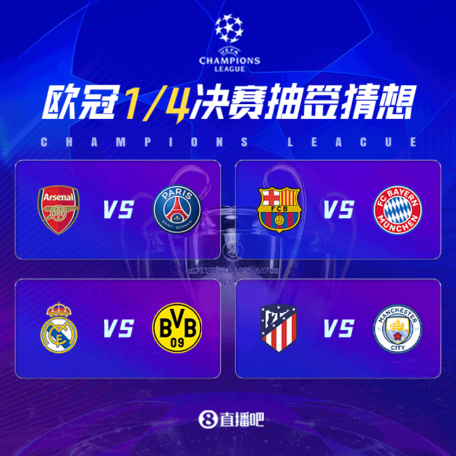 北京时间今晚19:00,欧冠1/4决赛将进行抽签。本赛季的8强被球迷称为“史上最刺激8强“,可谓“毫无尿点”。