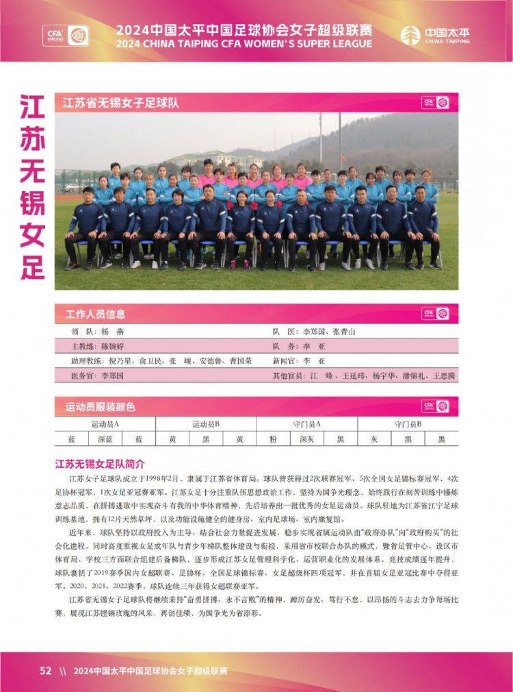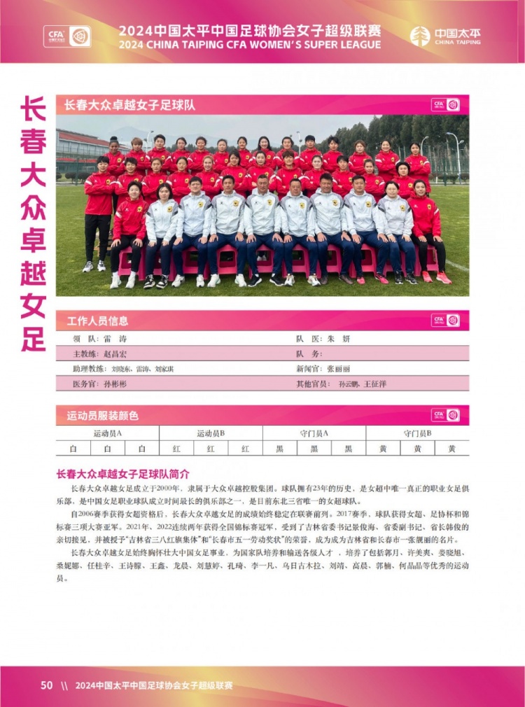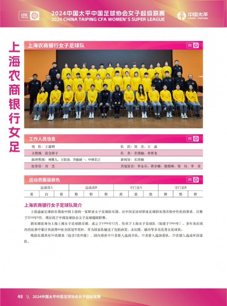 球队巡礼(一):武汉车谷江大女足、上海农商银行女足、长春大众卓越女足、江苏无锡女足