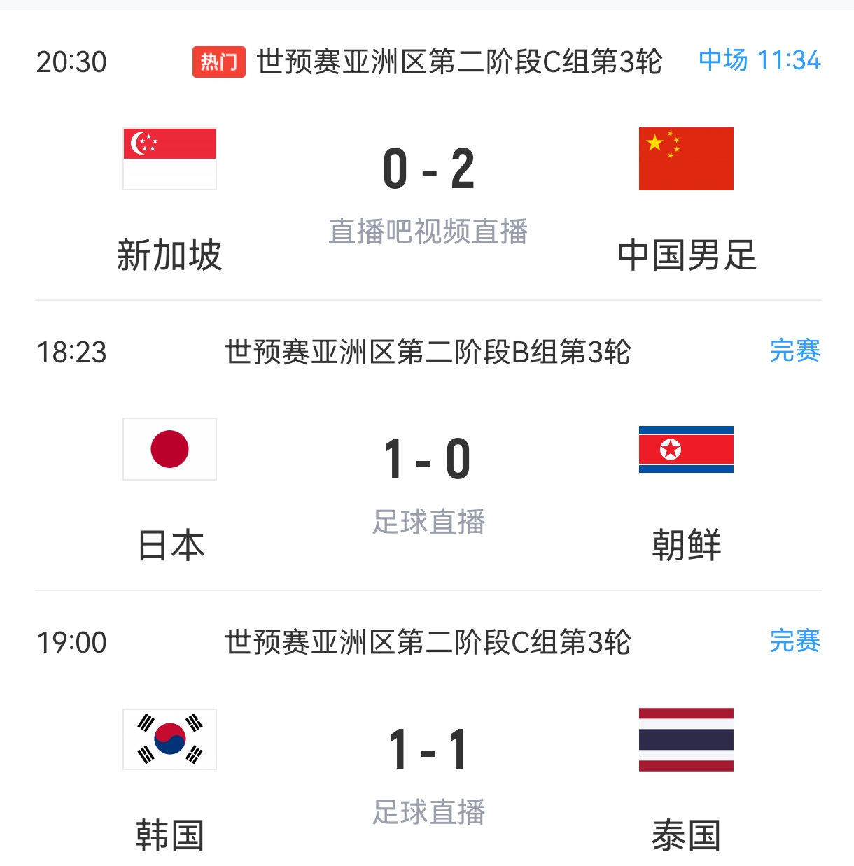 东亚三强国足半场2-0领先日本1-0朝鲜韩国1-1泰国