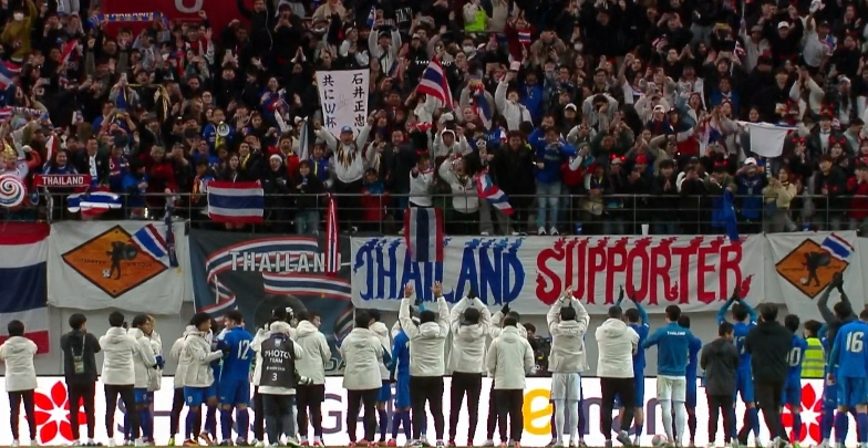 抢下1分!泰国客场球迷挥舞国旗,非常开心