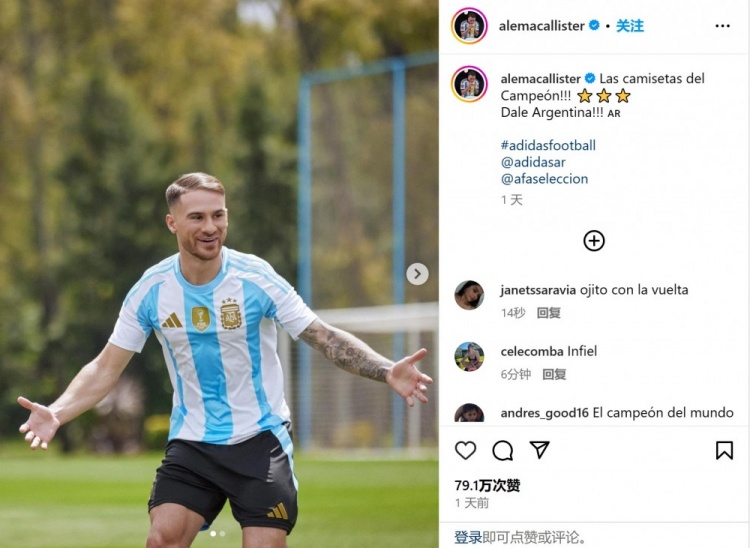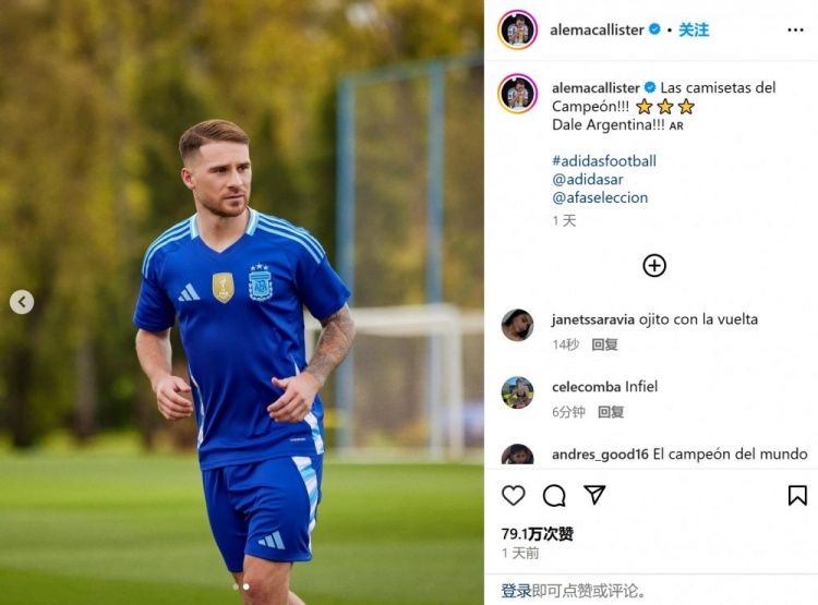 麦卡写道:属于冠军的球衣!!!⭐⭐⭐加油,阿根廷!!!