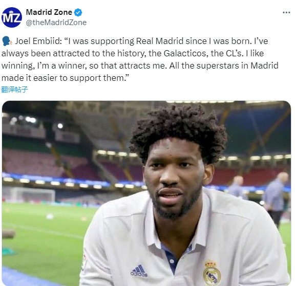 3月22日讯 NBA球星恩比德在接受采访时,表示自己从出生起就是皇马球迷。