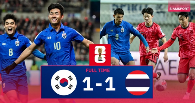 最终,泰国队客场1-1战平韩国抢得1分,目前力压中国男足排名小组第二。3月26日,泰国队将回到主场与韩国进行二番战。