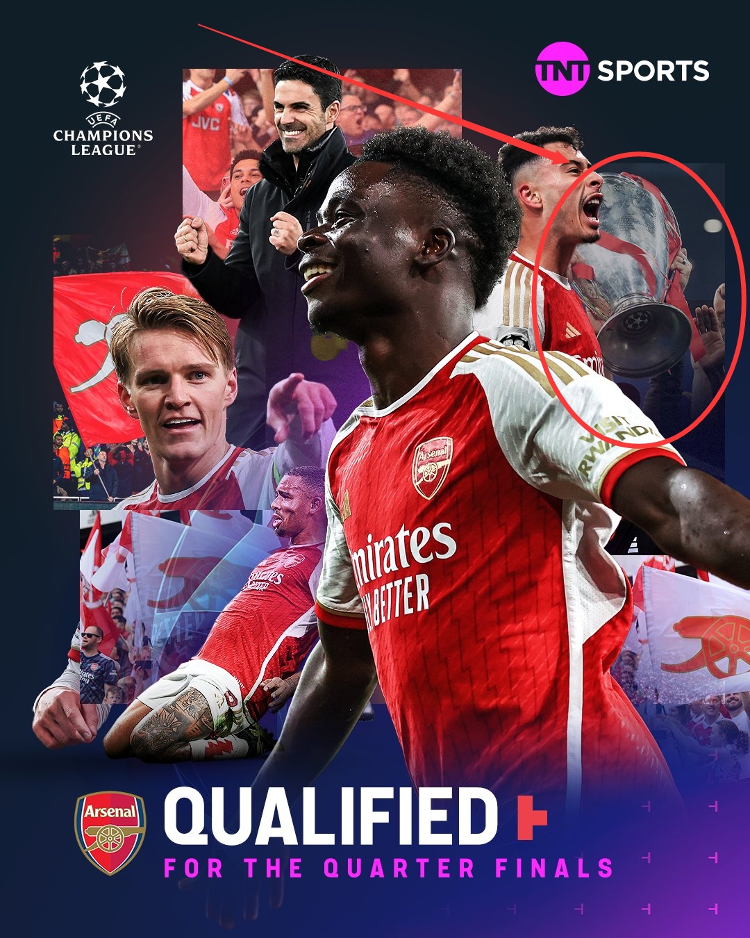 TNT Sports制作的阿森纳晋级欧冠8强海报