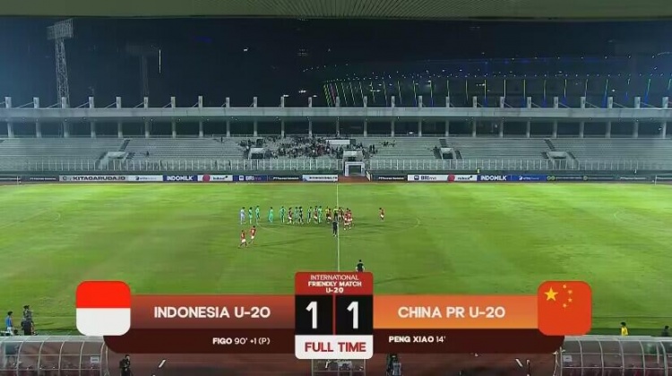 雅加达友谊赛,U19国青1-1遭印尼绝平,上半场U19国青利用战术角球取得领先,彭啸头球破门;下半场贺一然送点,菲戈-丹尼斯主罚扳平。最终双方握手言和,两队本月25日将再战一场。