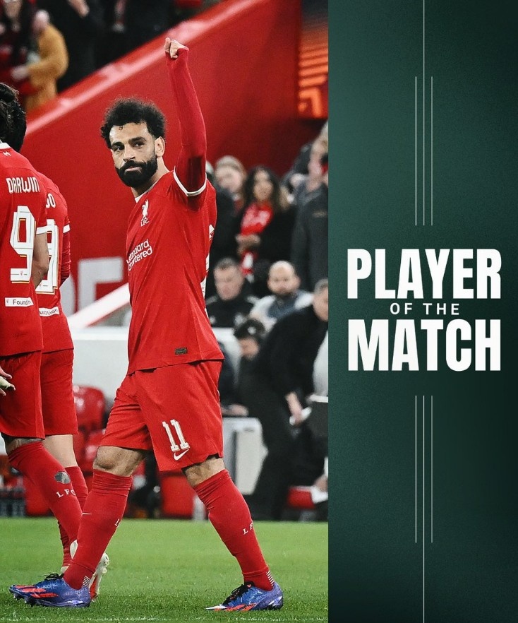 本场比赛萨拉赫第10分钟破门,还分别助攻克拉克、加克波以及索博斯洛伊进球,赛后他也当选利物浦官方评选出的本场比赛队内最佳球员。