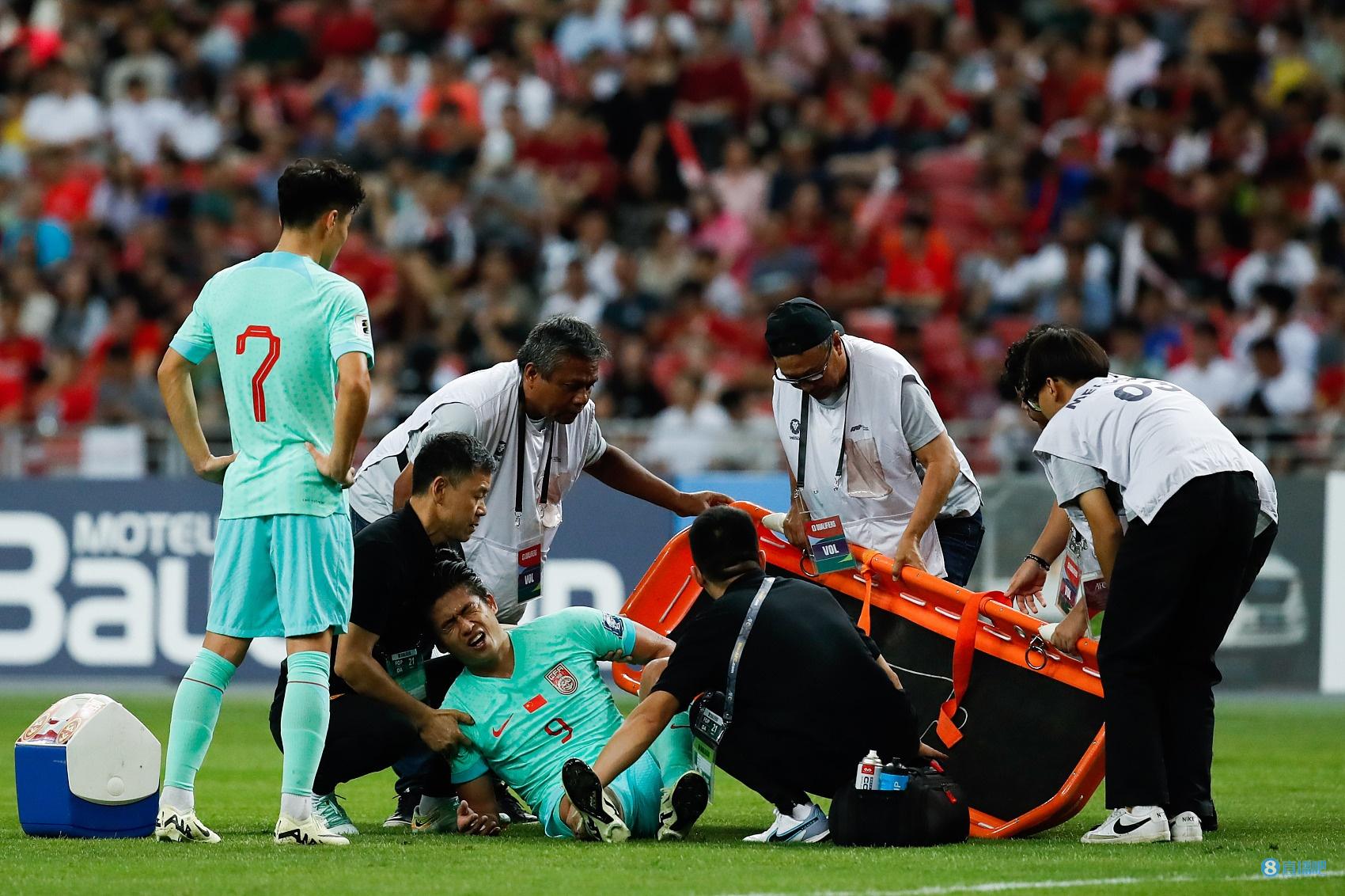 3月23日讯 世预赛36强赛第三轮,国足客场2-2新加坡,比赛中张玉宁受伤被担架抬出场外。