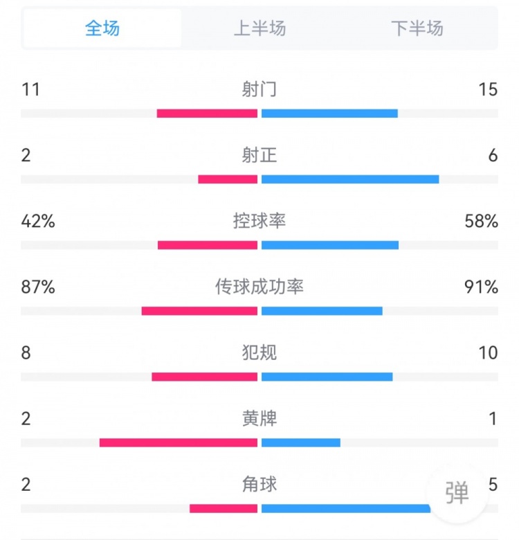 控球率42%-58%