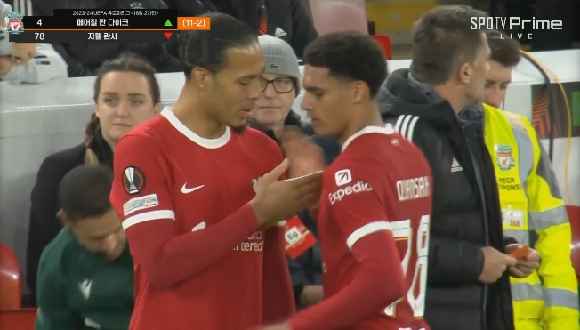03月15日讯 欧联杯1/8决赛次回合,利物浦主场对阵布拉格斯巴达。第65分钟,宽萨铲球染黄,克洛普抱怨染黄,同时范迪克出场换下宽萨。