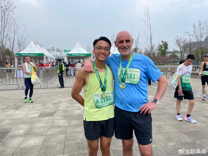03月24日讯 据海港新闻官赵昊晨社媒,海港主帅穆斯卡特和意大利语翻译翁书荡今日参加了2024上海苏州河半程马拉松赛。
