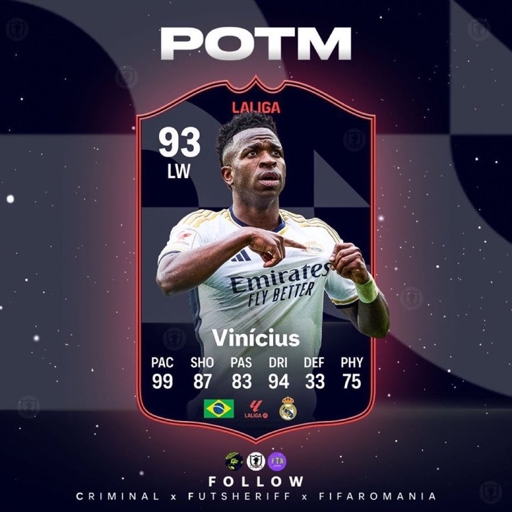 在3月份,维尼修斯共代表皇马出战了3场西甲比赛,打进5球、助攻1次。他也击败了莱万、布莱斯-门德斯、索罗斯和古鲁泽塔,当选了本月西甲最佳球员。
