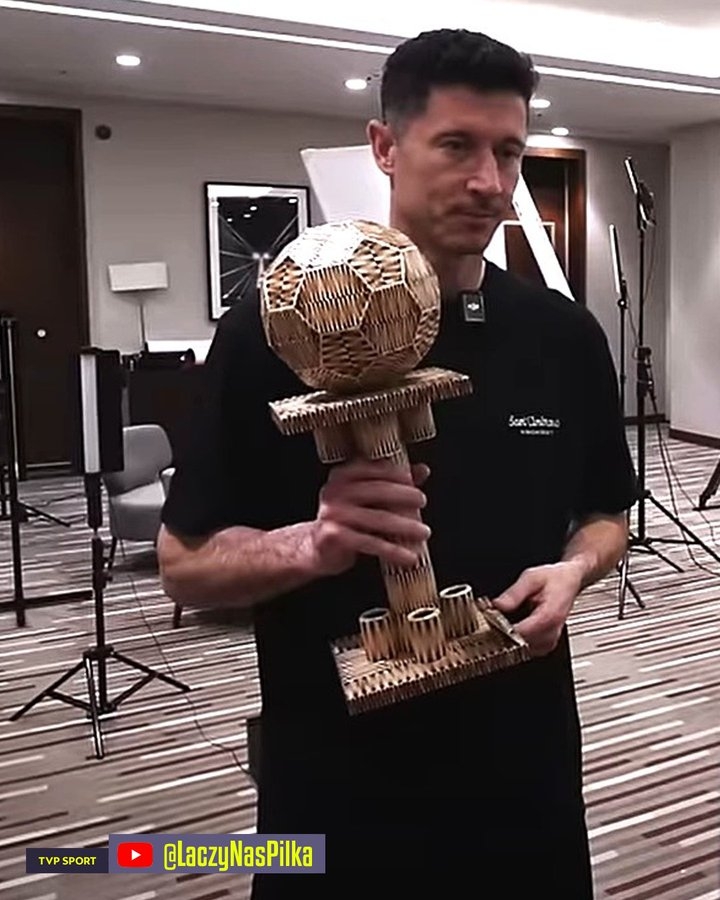 有球迷送给莱万一个由火柴制作而成的“金球”奖杯,以感谢他对残疾人的帮助和支持。