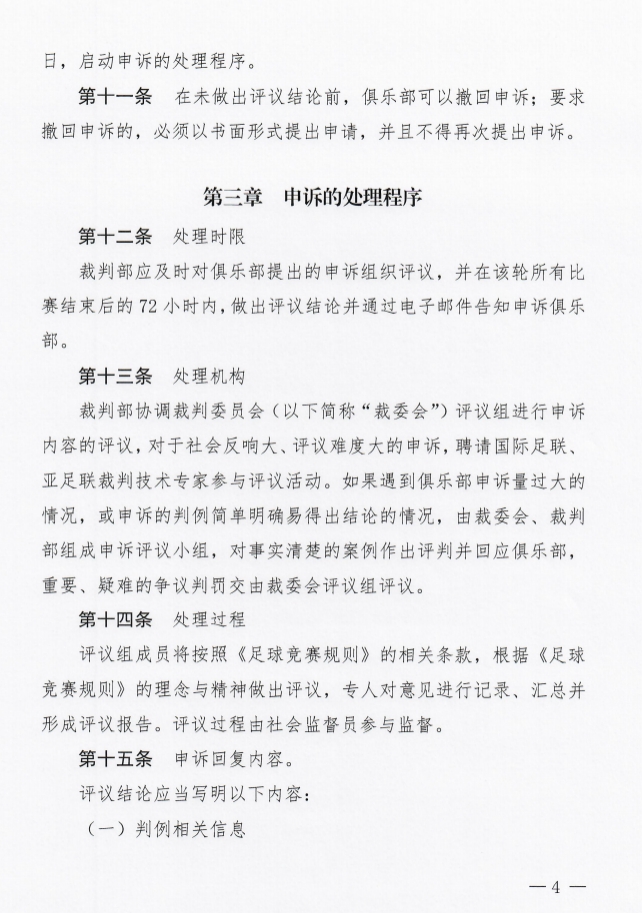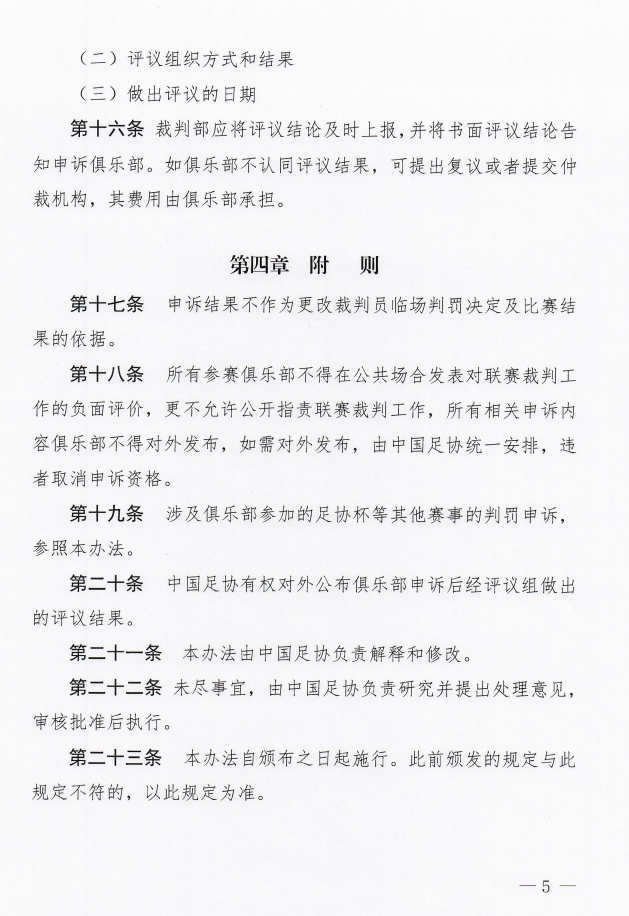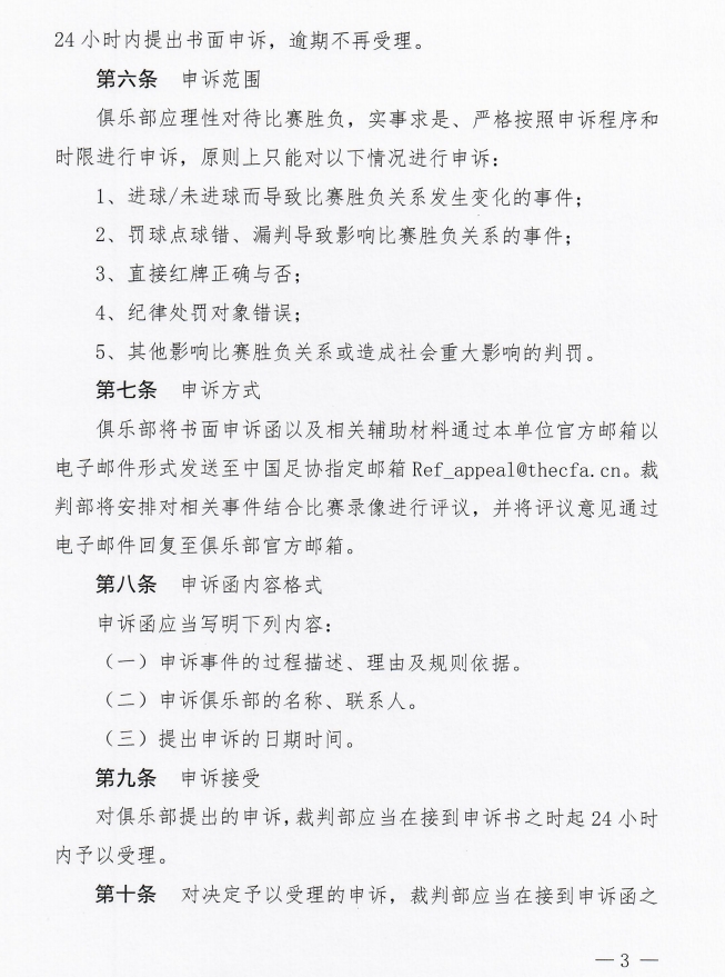 关于申诉范围,足协明确了,只有影响胜负等五种情况下允许申诉。