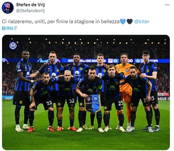 德弗里今日发文:“我们将再次崛起,团结一致,以自己的方式结束这个赛季。”
