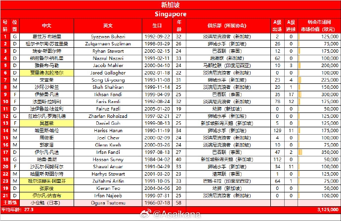 新加坡队客战中国23人大名单调整5名球员,3名华裔球员补充入队