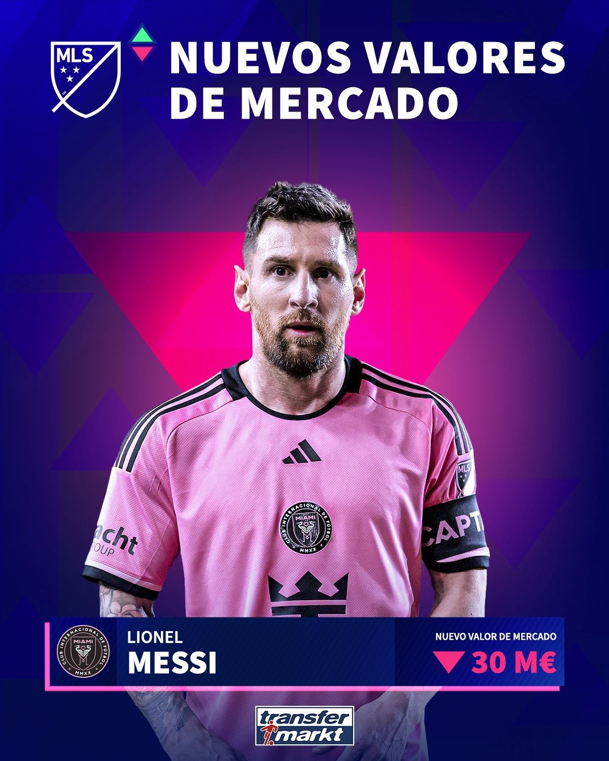 36岁梅西身价更新:3500万欧跌至3000万,依然是美职联最高