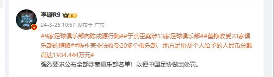 李璇:强烈要求公布全部涉案俱乐部名单!以便中国足协做出处罚。