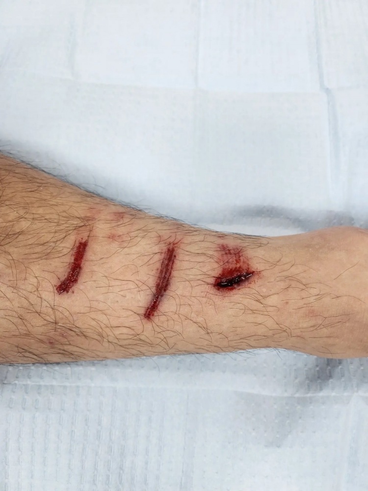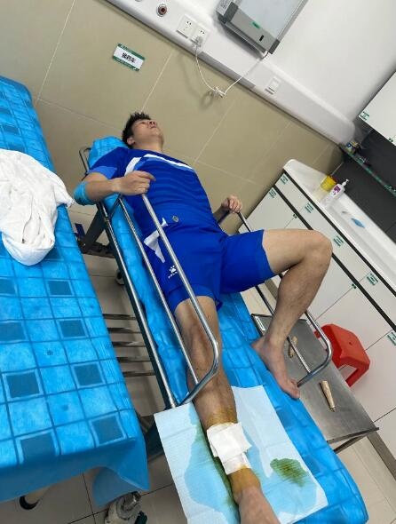 赛后,赵明剑在社媒晒出了他的小腿被铲出三道血口的照片,并吐槽写道:“裁判没有VR您是真看不见吗?我发出来你看看,缝了3针。”