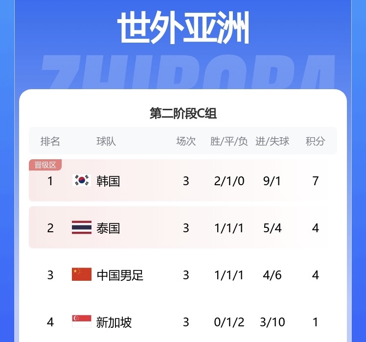 5天前伊万科维奇迎来执教国足首秀,客场2-0领先的情况下最终2-2战平新加坡。男足世预赛C组前3轮,中国1胜1平1负积4分暂居小组第三,与泰国同分。男足FIFA排名上,中国第88,亚洲第13;新加坡第156,亚洲第31。