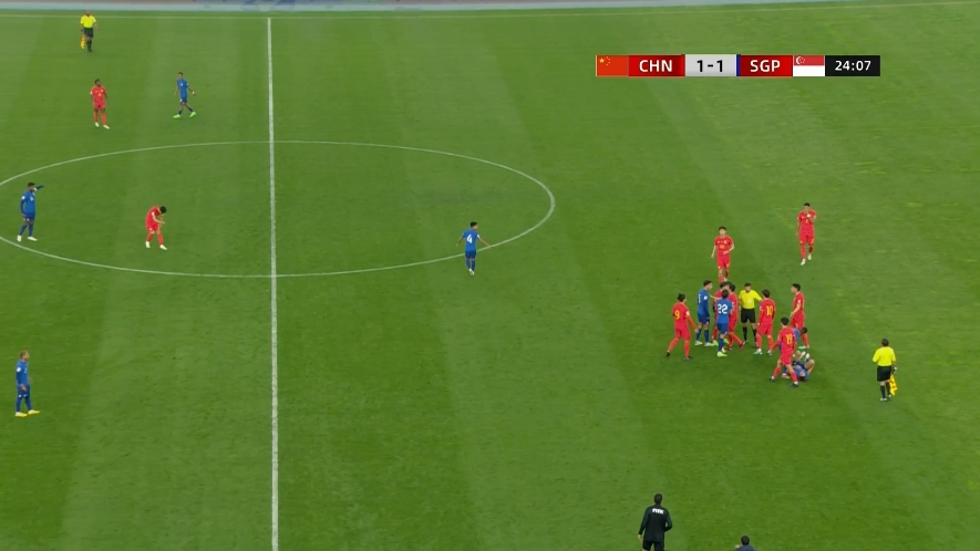 03月26日讯 国足与新加坡拼抢时险出冲突,主裁过来双方冷静下来
