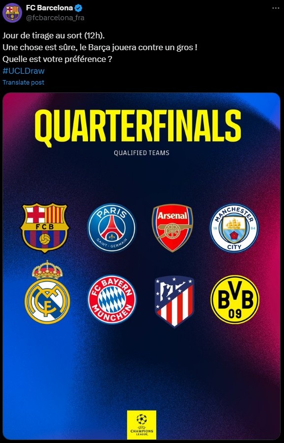 巴萨官推写道:“抽签日到来!有一件事是肯定的,那就是巴萨将迎来一个强大对手!”