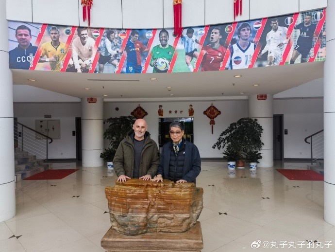 穆斯卡特带来一瓶香槟,期待徐指导2025全运会取得佳绩,徐根宝也祝福穆斯卡特。两人在幸运石前合影,之前的海港外籍教练佩雷拉、莱科、哈维尔都合影了,徐根宝也祝福穆斯卡特夺冠。